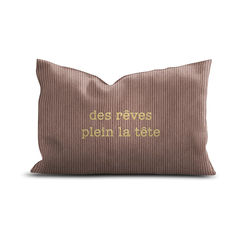Un coussin uni à message brodé
